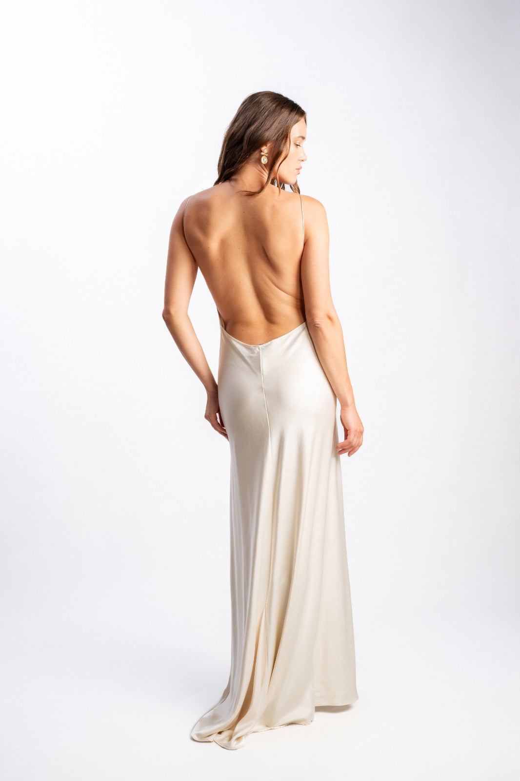 Pure sophistication in motion. The Melia Satin Dress features a fluid drape, open back, and deep side slit for a look that’s both confident and effortless. A timeless silhouette that embodies modern allure and quiet luxury.