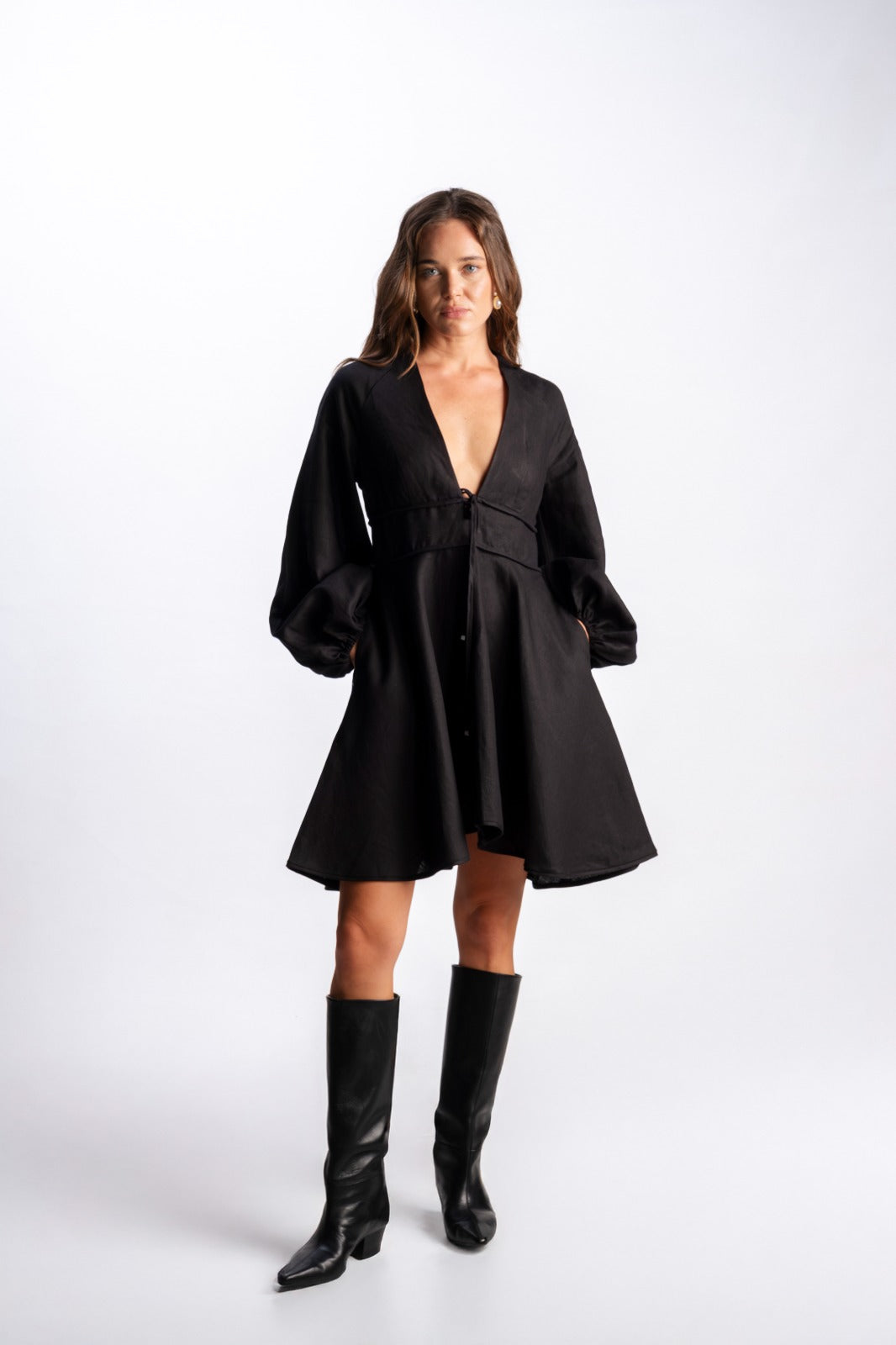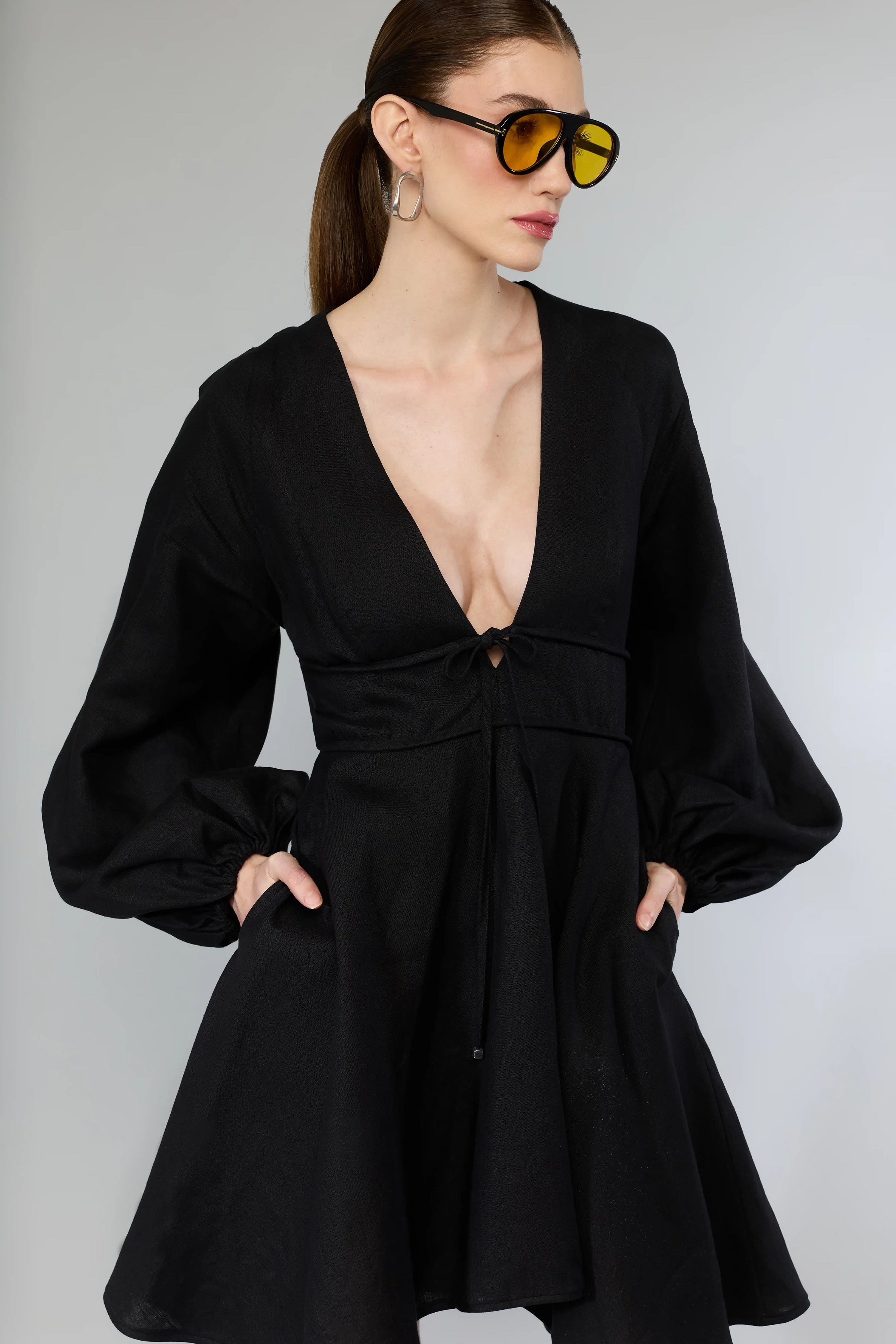 Elegant and bold, this dress features voluminous sleeves and a flowing silhouette. Crafted from lightweight polyester, it offers effortless style with a modern edge.